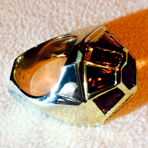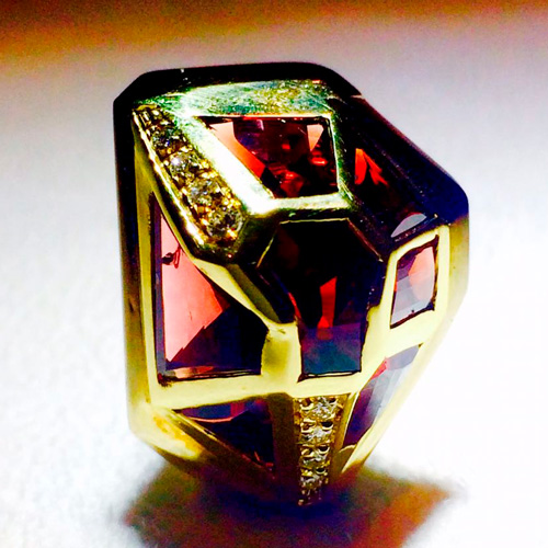 Ring in yellow gold with diamonds and garnet
