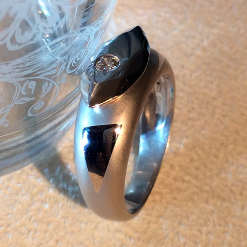 Sandblasted white gold ring with brilliant